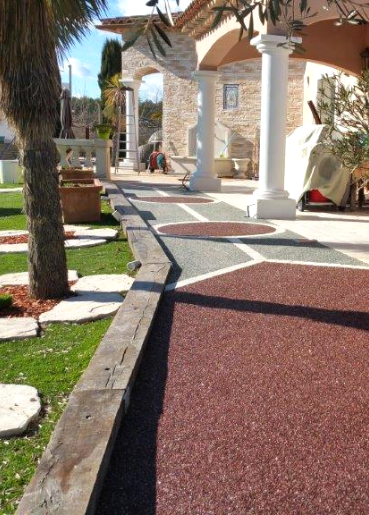 Le revêtement Mobystone® en moquette de marbre est exécuté manuellement par nos techniciens spécialisés. Ce sol haut de gamme est composé de concassés de marbre associé à des résines spécialement sélectionnées. Nous posons ce type de revêtement sur les terrasses, les allées de jardins, les tours d’arbres, contours de piscine, escaliers, garages… Nos équipes de pose préconisent des joints de dilatations pour ceinturer la zone.
