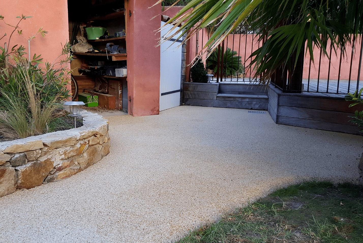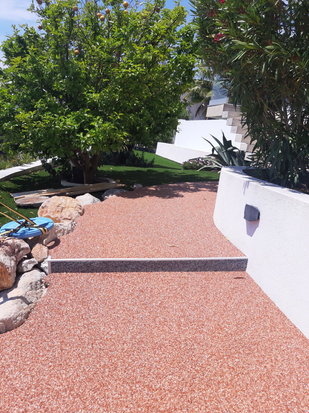 Le revêtement Mobystone® en moquette de marbre est exécuté manuellement par nos techniciens spécialisés. Ce sol haut de gamme est composé de concassés de marbre associé à des résines spécialement sélectionnées. Nous posons ce type de revêtement sur les terrasses, les allées de jardins, les tours d’arbres, contours de piscine, escaliers, garages… Nos équipes de pose préconisent des joints de dilatations pour ceinturer la zone.