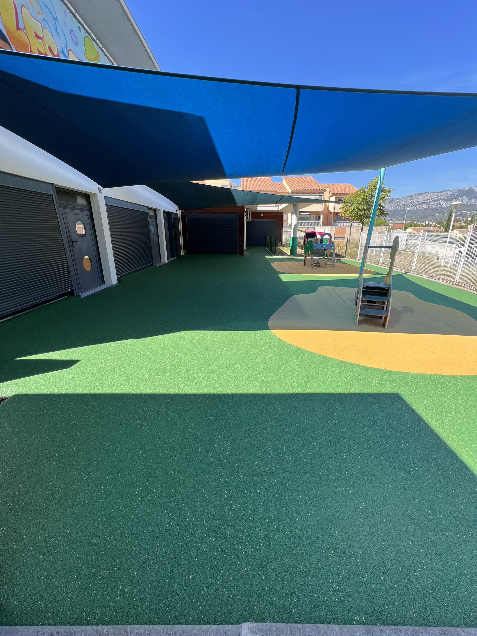 Le sol coulé MOBYSOL® est idéal pour les aires de jeux d’enfants, les cours d’écoles et de crèches, les tours d’arbres, les terrains de sports, les EHPAD, etc.