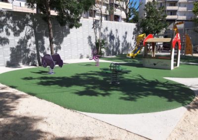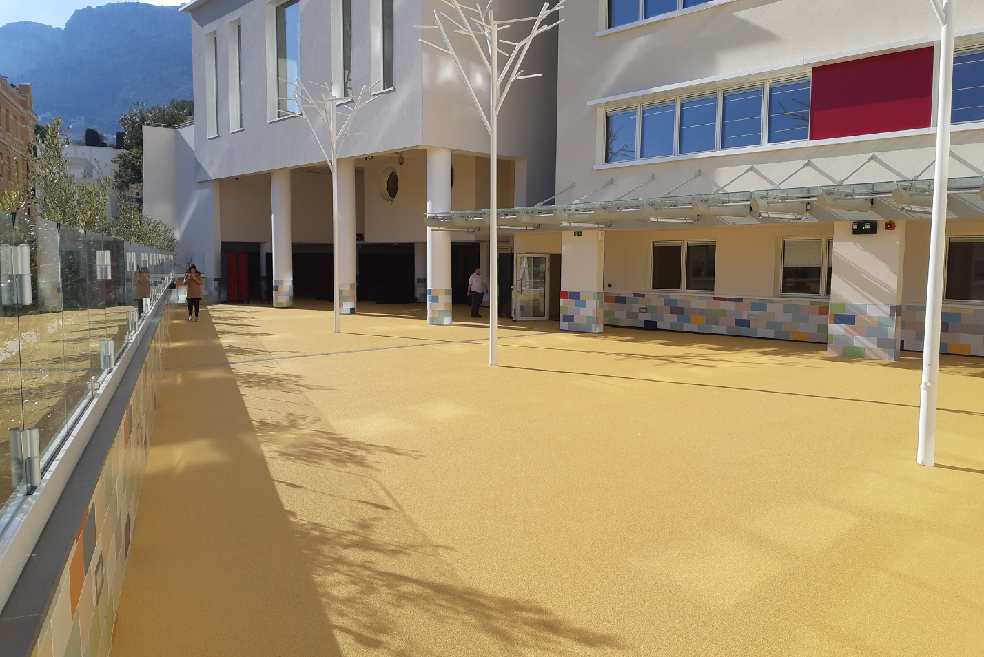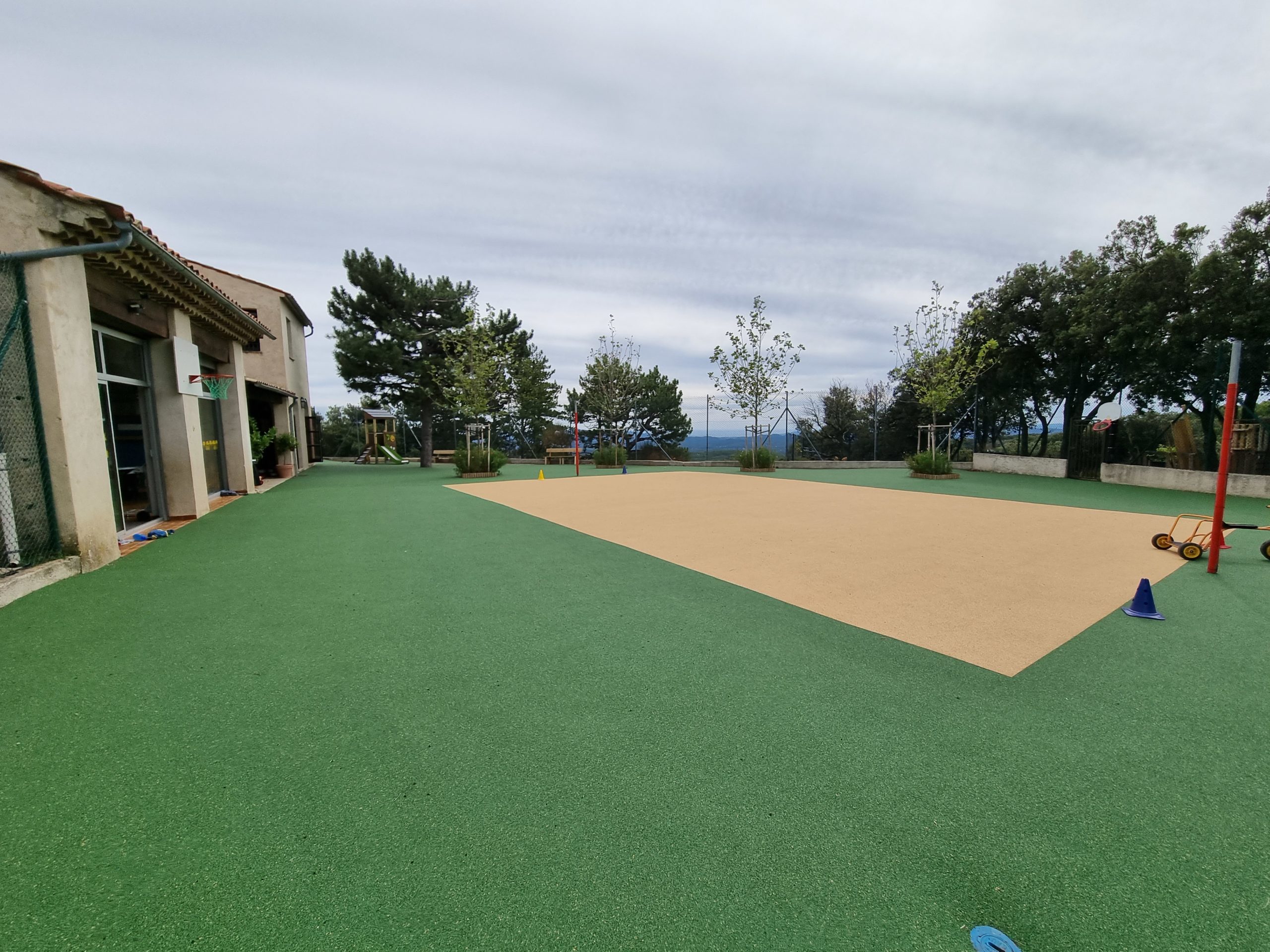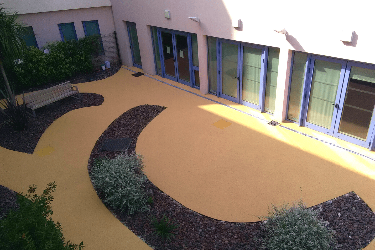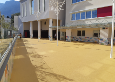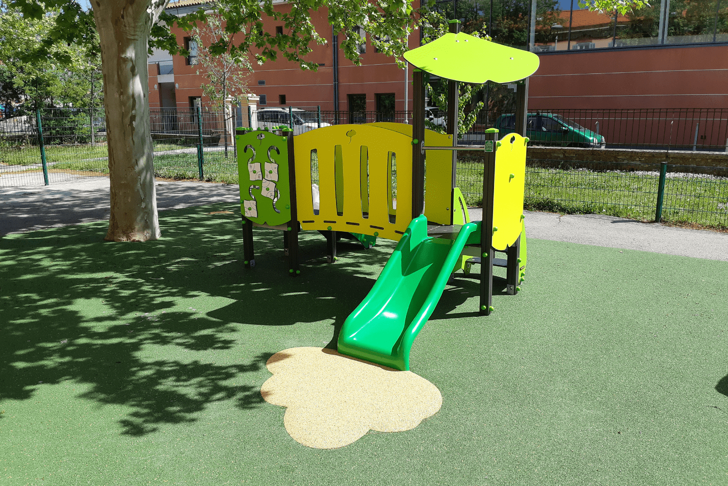 Le sol coulé MOBYSOL® est idéal pour les aires de jeux d’enfants, les cours d’écoles et de crèches, les tours d’arbres, les terrains de sports, les EHPAD, etc.